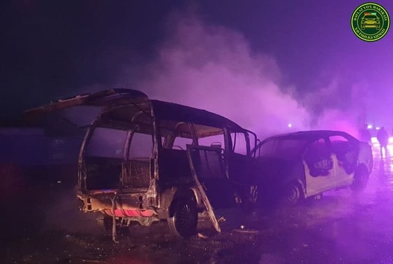 В результате столкновения возник пожар. Водители двух автомобилей и один пассажир были госпитализированы с травмами.