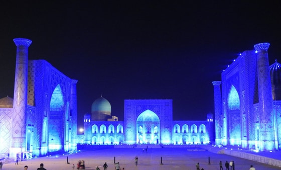 В Самарканде в синие цвета окрасится архитектурный ансамбль площади Регистан.