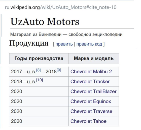 В «Википедии» же гордо указано, что эти модели производятся(!) АО UzAuto Motors. О такой репутации печётся лидер партии «Миллий тикланиш»?