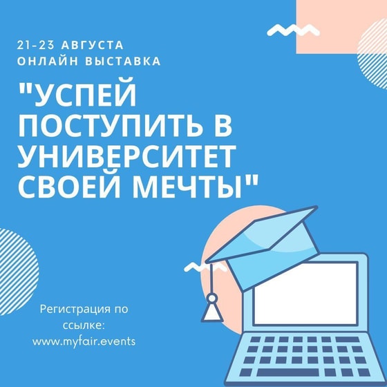 Онлайн-выставка "Успей поступить в университет своей мечты – 2020" пройдет с 21 по 23 августа с 12:00 по 20:00 на платформе MyFair.Events: