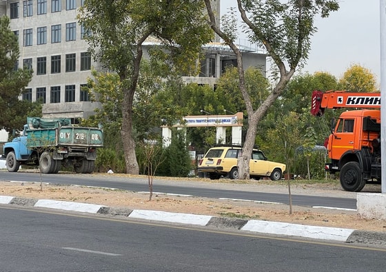 На противоположной стороне расположена дорога, ведущая к клинике Ташкентского педиатрического медицинского института. Она превращена в автостоянку, где паркуются грузовые авто. Тот факт, что территория, которая не является стоянкой для грузовых автомобилей, сейчас занята ими, доставляет неудобства пешеходам и студентам.