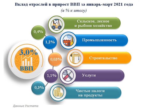 В сообщении Узстата отмечается: «Несмотря на увеличение объёмов строительных работ на 0,5 % по сравнению с январём-мартом 2020 года это почти не оказало влияния на рост ВВП (в январе-марте 2020 года – 0,5 процентных пункта).