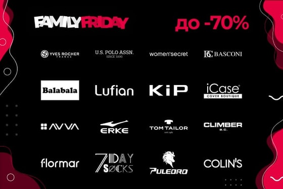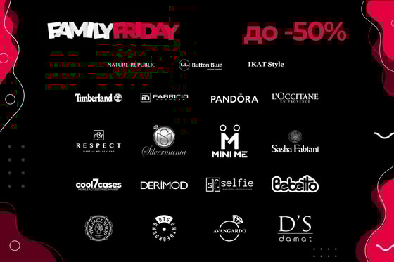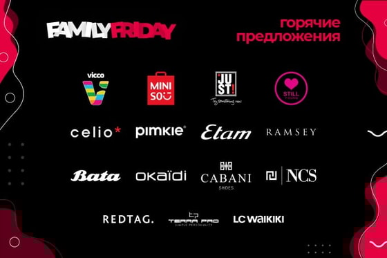 Family Friday проходит только три дня в более 60 магазинах известных зарубежных и локальных марок. Ищите наклейку Family Friday в магазинах любимых брендов.