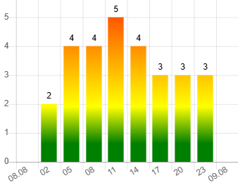 Пятибалльные геоудары будут наблюдаться в 11:00, до и после этого прогнозируются четырехбалльные показатели. Спад ожидается ближе к 17:00.