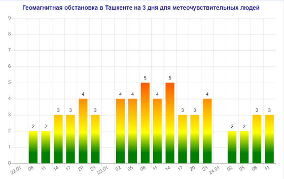 Завтра (23 января) в Ташкенте будет наблюдаться магнитная буря мощностью пять баллов, следует из данных сервиса Meteonova.