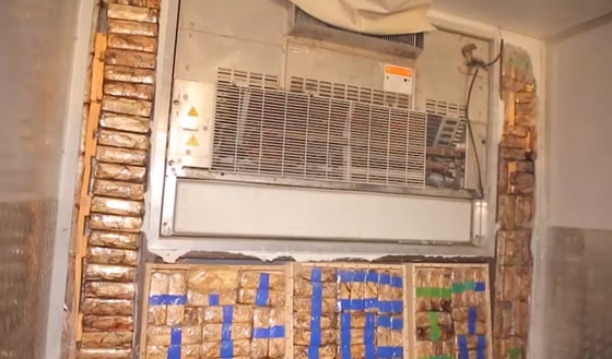 Чтобы найти товар, пограничникам пришлось вскрыть машину. Наркотики были запрятаны в дополнительный тайный отсек между передней частью прицепа и кабиной водителя.
