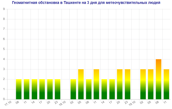 Послезавтра (19 октября) в Ташкенте будет наблюдаться магнитная буря мощностью четыре балла, следует из данных сервиса Meteonova.