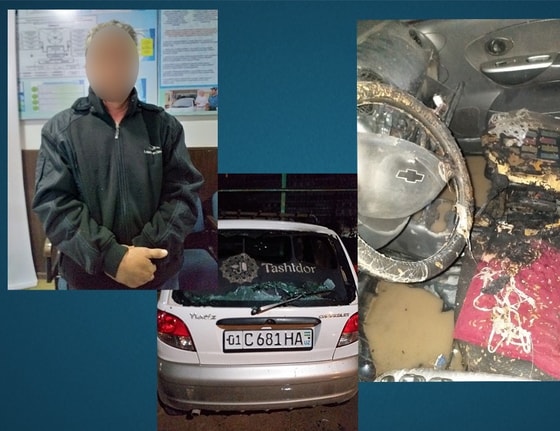 В ночь с 12 на 13 февраля, примерно в 1:45 сотрудник 1-го отряда 4-го батальона бригады ППС ГУВД г. Ташкента младший сержант А. Махмудов и военнослужащий Национальной гвардии Б. Мамажонов при патрулировании Чиланзарского района за школой № 90 увидели автомобиль марки «Матиз», в салоне которого мужчина пытался поджечь себя.