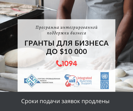 Совместная инициатива Программы Развития ООН и Торгово-промышленной палаты Узбекистана сообщает о продлении крайнего срока приёма заявок от представителей малого бизнеса Джиззакской, Кашкадарьинской и Ферганской областей к участию в Программе интегрированной поддержки бизнеса.