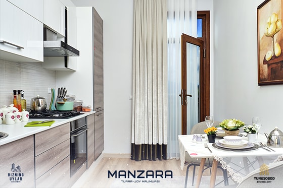Жилой комплекс Manzara расположен на территории будущего Yunusobod Business City. Этот функциональный квартал городского типа с развитой инфраструктурой занимает площадь свыше 45 Га. Именно здесь в настоящий момент полным ходом идут строительные работы по возведению современного жилого комплекса, состоящего из 12 современных 9, 13, 16 -этажных жилых домов. Квадратура реализуемых квартир – от 29 до 100 кв. м.