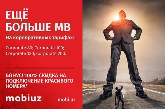Мобильный оператор Mobiuz предлагает индивидуальным предпринимателям, представителям малого, среднего и крупного бизнеса тарифную линейку Corporate. Это восемь тарифных планов с абонентской платой от 30 тысяч сумов до 200 тысяч сумов в месяц с включенными дополнительными услугами.