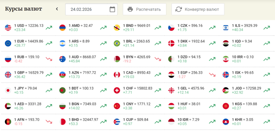 Курс доллара составил 12 236,13 сумов (+23,34), фунта 16 529,79 сумов (+36,42), евро 14 439,86 сумов (+28,77), а рубля 159,10 сумов (-0,42).