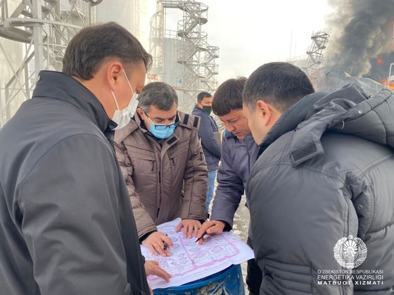 Министр энергетики посетил место возгорания нефтебазы в Ташобласти