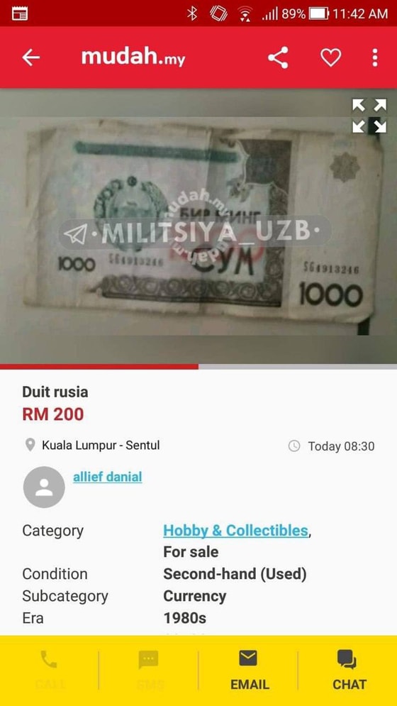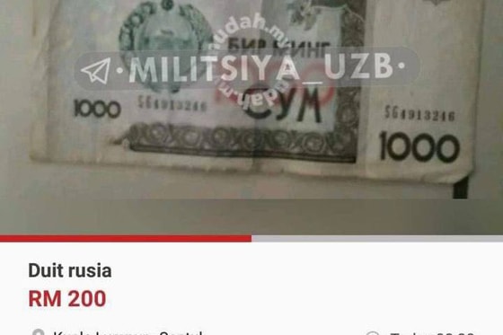 В узбекских Telegram-каналах появился скриншот одного малазийского сайта, на котором продают банкноту Узбекистана номиналом 1000 сумов.
