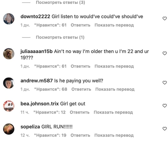 Девушки в Instagram, обращаются к Иден, предупреждая ее, что актер может расстаться с ней, когда той исполнится 25 лет.