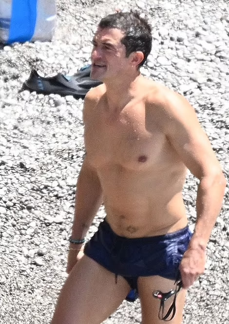 Орландо, в свою очередь, продемонстрировал свою физическую форму в черных шортах для плавания, выполняя различные упражнения на растяжку и позы йоги.
