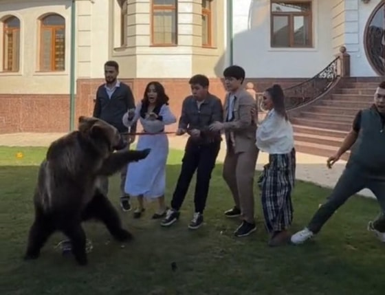 В Узбекистане группа молодых людей начала снимать видео с медведем, что привлекло к их блогу значительное внимание. Они привязали пасть животному причиняя вред медведю.