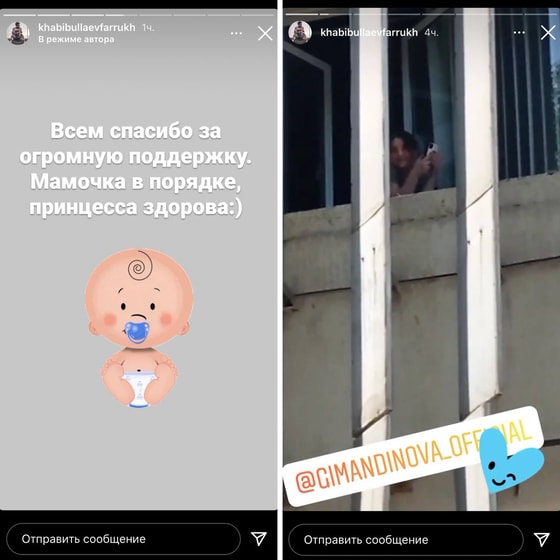 Как только родился ребёнок, Фаррух первым написал в Instagram о том, что роды прошли успешно и у них родилась здоровая девочка.