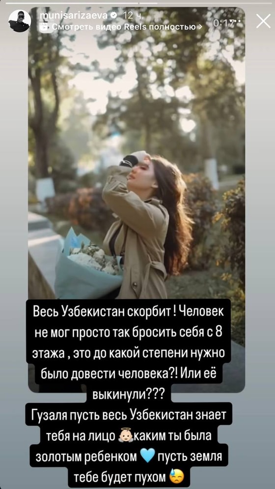12 декабря в Самарканде трагически покончила с собой молодая бьюти-блогерша и косметолог, которой было всего 23 года. Генеральная прокуратура Узбекистана подтвердила данную информацию и сообщила о назначении судебно-медицинской экспертизы.