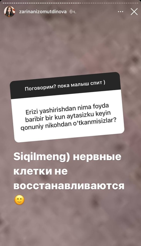 Узбекская актриса Зарина Низомиддинова провела опросник у себя в Instagram и открыто ответила на вопросы поклонников.