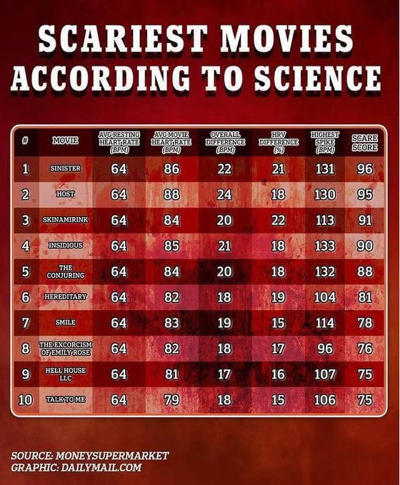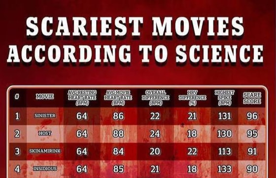 Специалисты решили провести эксперимент, чтобы узнать, какой же фильм является самым страшным. Для этого ученые отслеживали пульс зрителей во время просмотра.