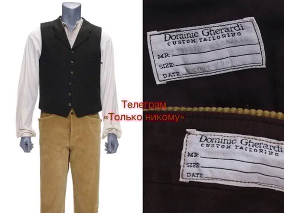Отмечается, что образ состоит из вельветовых брюк, рубашки с длинным рукавом на пуговицах и жилета. На одежде есть бирка с надписью: MR: LEONARDO DICAPRIO и датой съемок — август 1996 года.