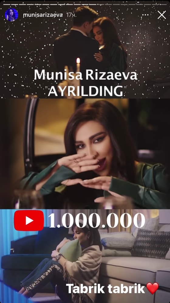 Напомним, в честь выхода своего нового клипа, певица Муниса Ризаева объявила челлендж в Instagram. За лучший кавер на ее новую композицию Ayrilding она обещает подарить денежный приз в размере одного миллиона сум.