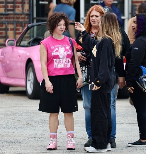 На съемочной площадке Сидни Суини предстала с короткими темными волосами, в футболке розового цвета с цитатой Кристи Мартин и черных шортах. Съемки проходят в Северной Каролине.