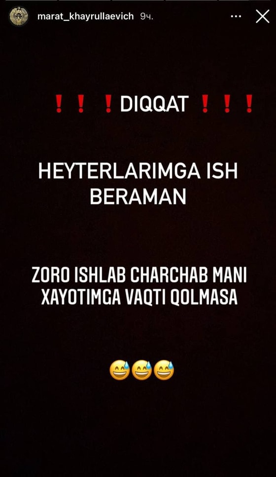 Предприниматель и муж артистки Шахзоды Мухаммедовой Марат Хайруллаевич решил нанять на работу своих ненавистников.