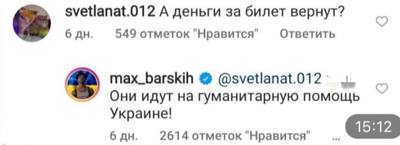 В интернете появилась информация, что украинский исполнитель Макс Барских отказывается возвращать деньги за его отмененные выступления в России. Об этом он открыто заявил в своем Instagram-аккаунте.
