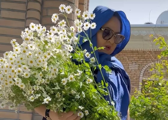 На видео можно заметить на руках знаменитости большой букет ромашек.