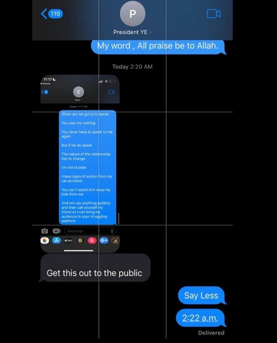 Кажется, Канье Уэст устал молчать и наконец нашел способ связаться с общественностью. Музыкант отправил скрин переписки с Илоном Маском своему другу Йену Коннору и попросил его опубликовать это в социальной сети.