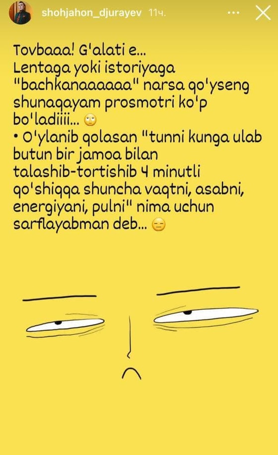 Шохджахон Джураев выразил свое недовольство из-за низкого актива в его Instagram аккаунте.