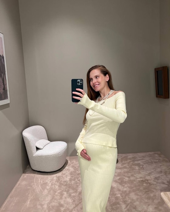 Девушка выложила фото с округлившимся животом.