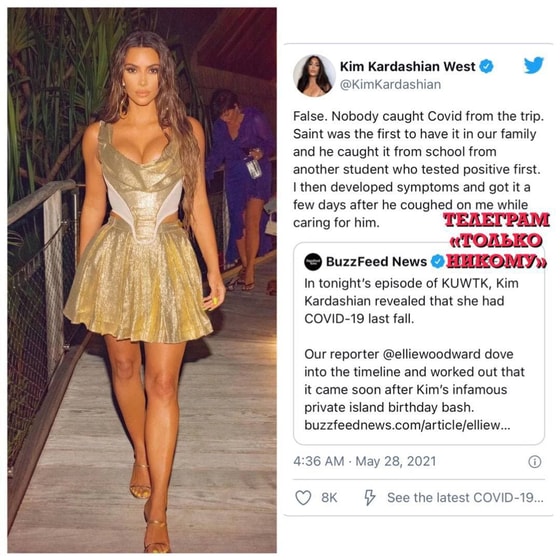 Журналисты припомнили ей, что как раз в то время Ким устроила островную вечеринку в честь своего 40-летия. И как-то просчитали, что положительный тест на «корону» ей пришёл через 10 дней после праздника.