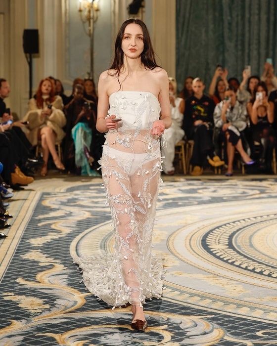 А буквально через несколько дней на подиуме Sinead Gorey дизайнеры показали, как можно стилизовать плеер оригинальным способом. Тот самый iPod Shuffle с его «родными» наушниками из нулевых теперь используется в качестве стильного аксессуара для волос и даже чокера.