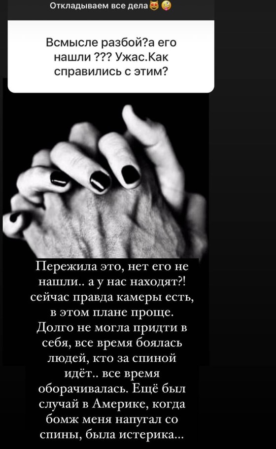 Один из пользователей поинтересовался, как она относится к трендовым балаклавам. Ксения дала отрицательный ответ и поделилась причиной ненависти к этому головному убору. По словам ведущей, когда она только начала работу на «Дом-2», на нее напал мужчина в маске и с ножом в руках.