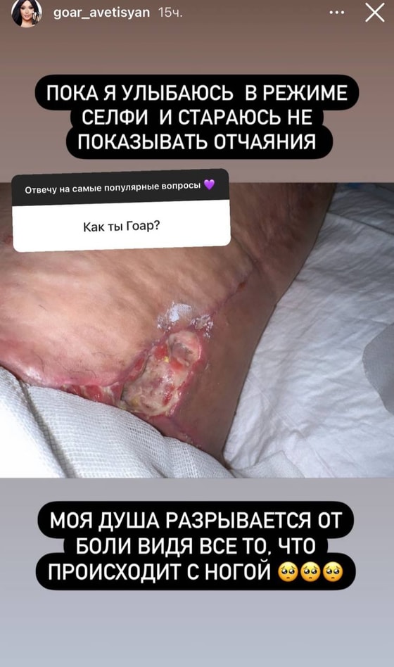 Звездный визажист и блогер Гоар Аветисян шокировала своих подписчиков, опубликовав ужасающие фотографии своей раны на ноге.