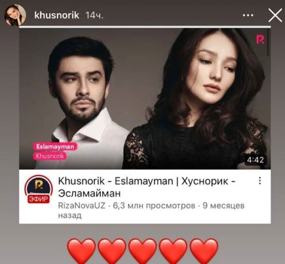 В феврале этого года исполнительница Хуснора Шодиева презентовала слушателям новых хит Eslamayman и клип о трагической истории любви. Поклонники сразу же тепло восприняли ролик и отметили, что нашли в клипе отражение собственной истории.