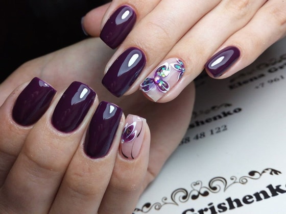 Богатый сливовый оттенок — выбор тех, кто любит благородную глубину. Идеально смотрится на коротких ногтях, добавляя образу изысканности.