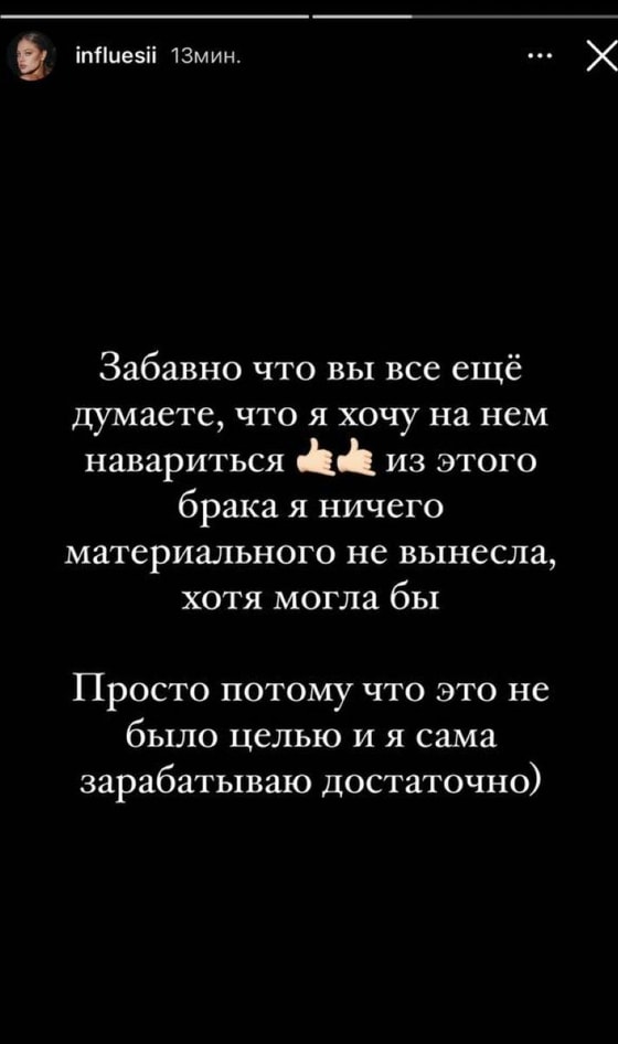 Забавно, что вы все еще думаете, что я хочу на нем навариться. Из этого брака я ничего материального не вынесла, хотя могла бы, – пишет Дилара.