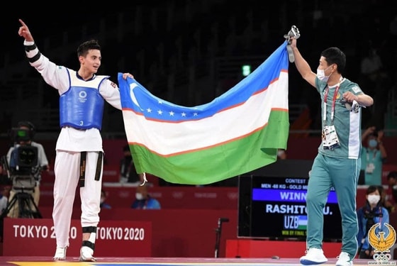 Первое олимпийское золото на Летних Олимпийских Играх 2020 в Токио завоевал 19-летний Улугбек Рашитов, став первым узбекистанцев в истории, получившим олимпийскую медаль по тхэквондо. На церемонии награждения в Токио звучит гимн Узбекистана. Из телевизионной студии в Ташкенте за победой Улугбека наблюдали его родные, еще миллионы зрителей – по всей стране.