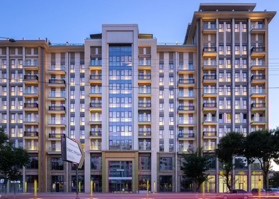 Это уникальное архитектурное решение: искусственный водопад, лаунж-зона, растения, детская площадка и воркаут-зона — размещены на бетонном основании, под которым находится два этажа парковки, благодаря чему у резидентов будет уединённое пространство для отдыха, скрытое от шума города.
