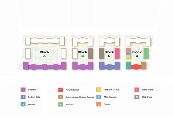 Внушительную часть первой линии авеню займут мультибрендовые бутики компании Podium Italia, представляющей на рынке Узбекистана такие ключевые люксовые бренды, как Dior, Gucci, Saint Laurent Paris, Tom Ford, Balmain, Prada и другие.