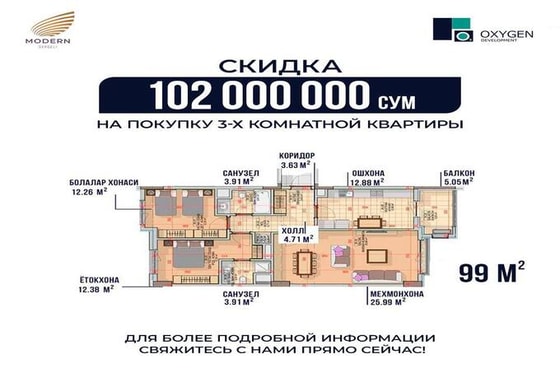 Квартиры в ЖК «Modern Sergeli» – смотрите, выбирайте и покупайте со всеми удобствами. Выгодные предложения со скидками – каждому покупателю!