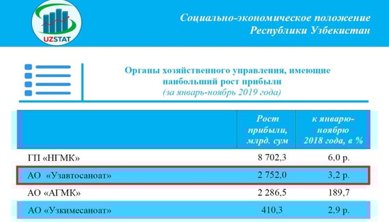 Конечно, негоже считать чужие деньги. Конечно, это показатели всего АО «Узавтосаноат». Конечно, это данные на 1 декабря прошлого года. Конечно, возможно в данных Узстата отражена не чистая, а балансовая прибыль. Конечно, возможно всё, но…