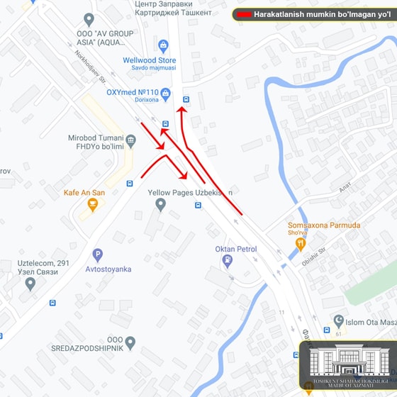 - Прямой заезд с улицы Фаргона йули на улицу Сайхун;