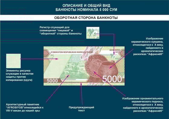 Тематика этих банкнот посвящена «Великому Шелковому Пути» и истории древних городов Самарканда и Ташкента, находящихся на территории нашего государства.