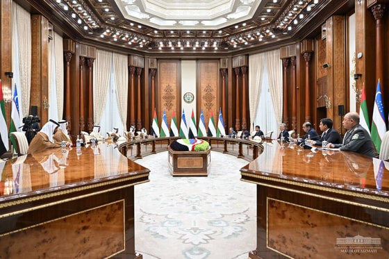 Президент Шавкат Мирзиёев провел встречу с делегацией ОАЭ во главе с заместителем премьер-министра, министром обороны, наследным принцем Эмирата Дубай Шейхом Хамданом бин Мухаммадом Аль Мактумом.