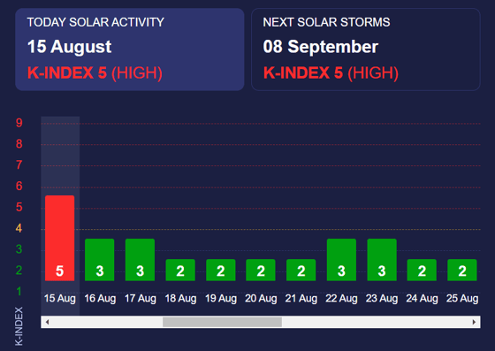 Геомагнитный показатель должен упасть до минимальных значений в пятницу (16 августа).